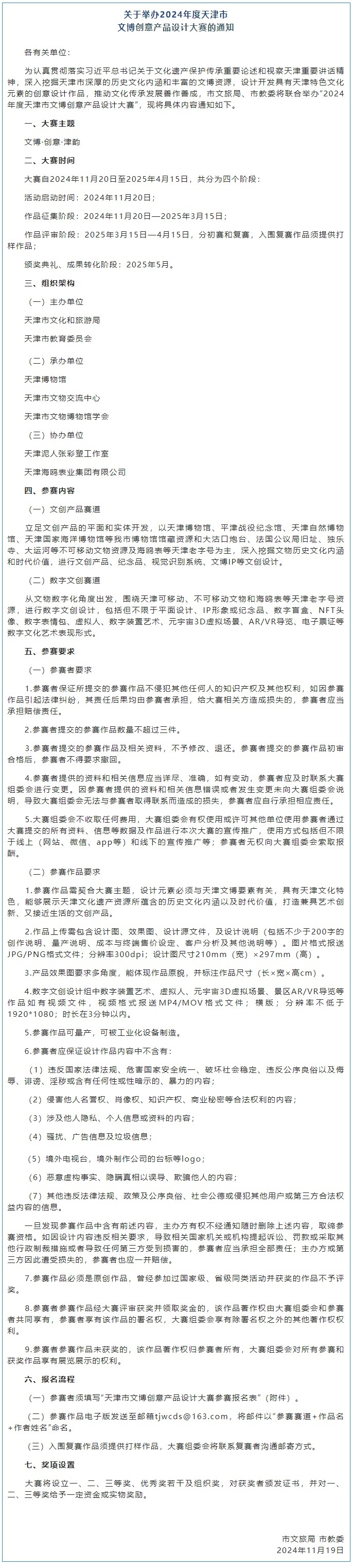 市文化和旅游局 市教委关于举办2024年度天津市文博创意产品设计大赛的通知