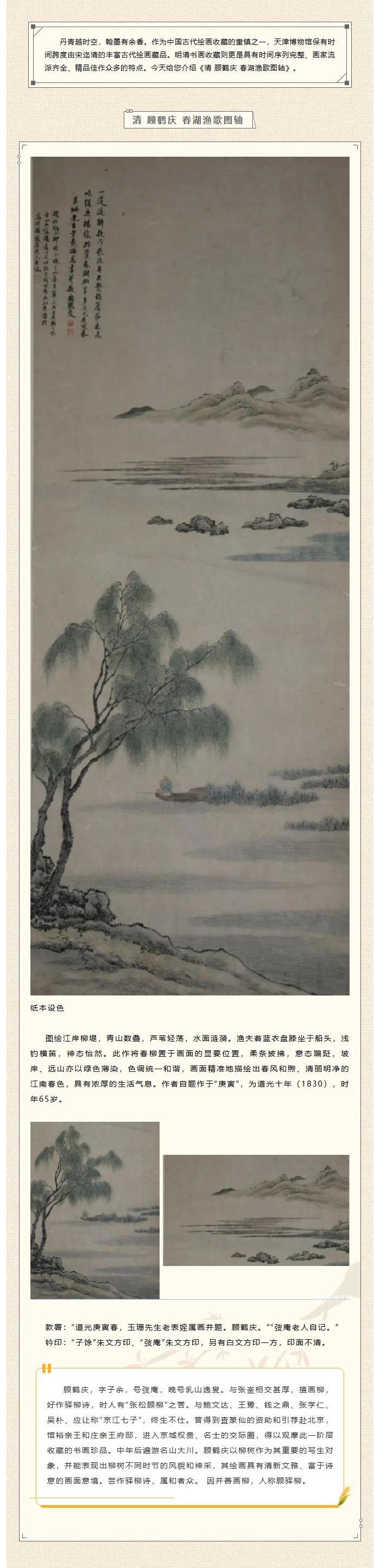 天博藏珍丨清 顾鹤庆 春湖渔歌图轴