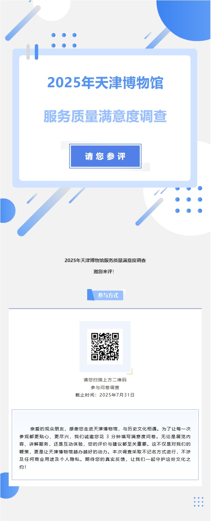 2025年天津博物馆服务体验调查开启,您的参观感受很重要