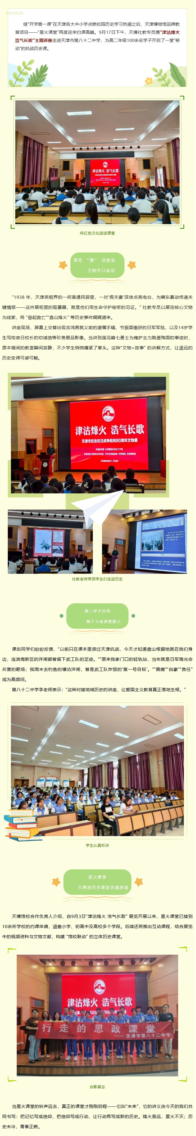 讲座进校园 烽火照青春丨天博“星火课堂”走进第八十二中学讲述津沽抗战史