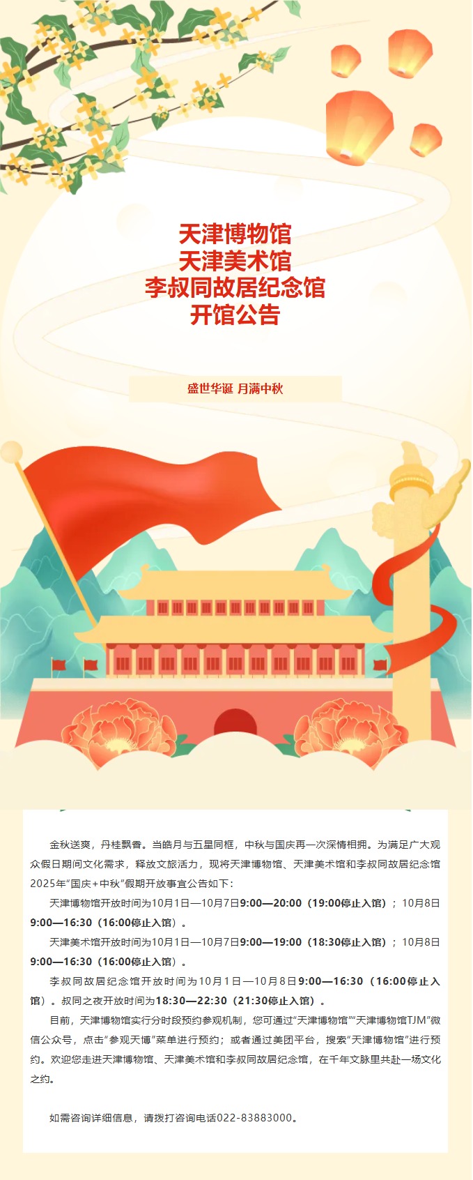 2025年天博三馆“国庆+中秋”假期开馆公告(附文化菜单)