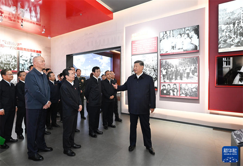 9月24日上午,中共中央总书记、国家主席、中央军委主席习近平在乌鲁木齐文化中心展览馆参观新疆维吾尔自治区成立70周年主题成就展。新华社记者 燕雁 摄