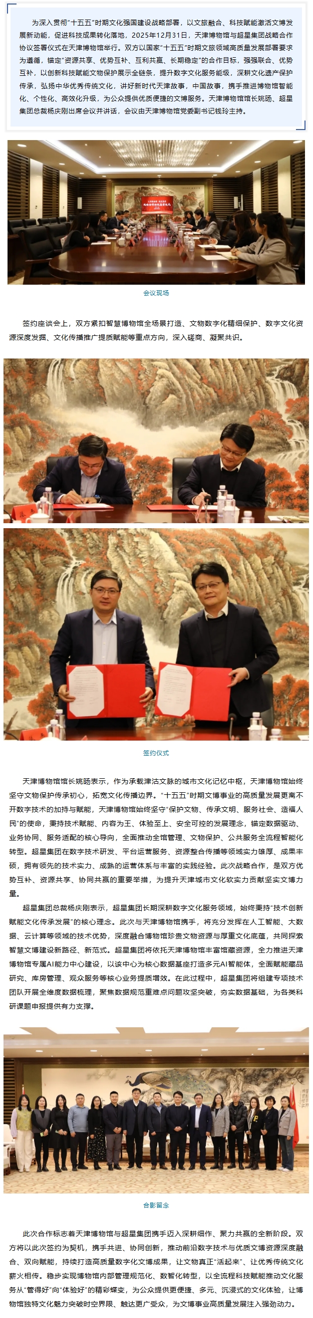 科技赋能文博 数智焕新未来丨天津博物馆与超星集团达成战略合作 共绘数字文博新蓝图