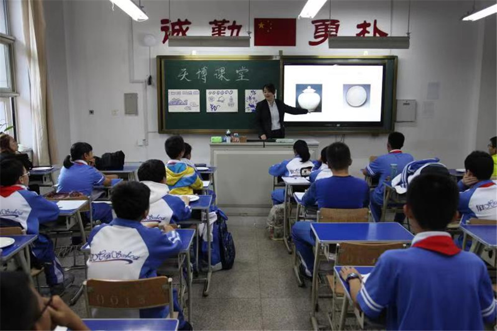 10月17日,“天博课堂之幽菁可爱的青花瓷”在四十一中开讲,课程梳理了青花瓷的发展历史,阐明了青花瓷在钴料、纹饰、器形等方面的时代特点,展示青花瓷之美。