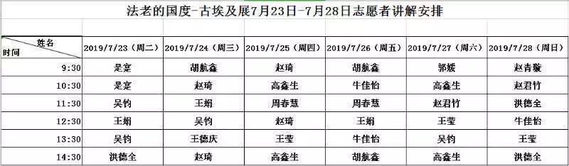天津博物馆公益讲解一周时间安排(7.23-7.28)