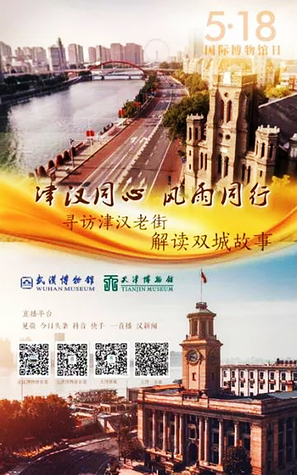 “红色记忆宣讲团”推出“津汉同心,风雨同行——寻访津汉老街,解读双城故事”线上寻访活动海报