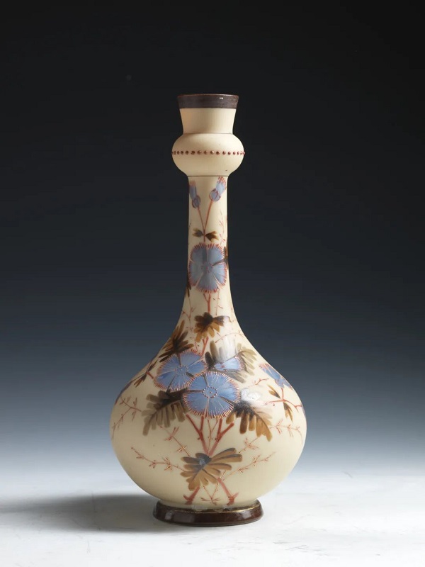 在同一玻璃器表面进行镀金、描金和画珐琅装饰的工艺最早可以追溯到公元十三、十四世纪的伊斯兰清真寺釉彩玻璃灯。而十九世纪的玻璃制作比历史上任何一个时期都显得空前繁荣,借鉴、挪用和并置前人的工艺成果,并有所创新是这一时期的主题。