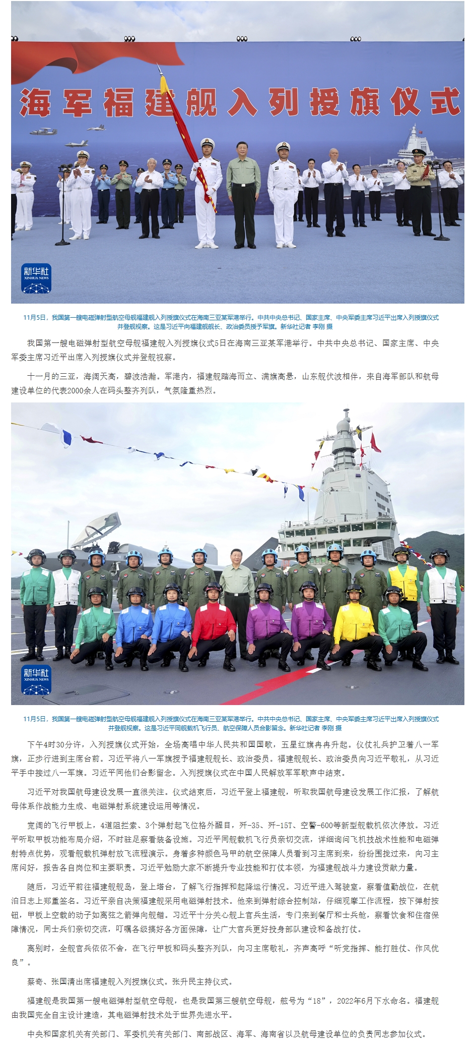 我国第一艘电磁弹射型航空母舰入列 习近平出席入列授旗仪式并登舰视察