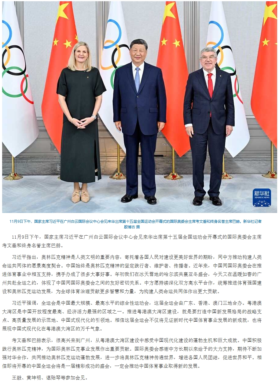 习近平会见国际奥委会主席考文垂和终身名誉主席巴赫