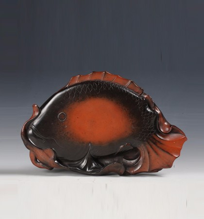明 朱砂荷鱼澄泥砚