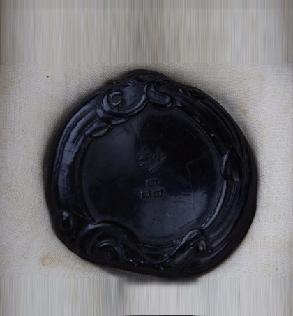 明嘉靖(1522-1566) 直径10厘米 高2厘米 墨作圆形,四周浮雕龙纹,中间篆书阳文“经之墨”,右侧“嘉靖”二字款,背面作团龙纹。此墨下端磨过,从磨过的地方看没气孔,可见其原料细腻,质地缜密,且墨模雕刻精细,虽磨用过仍不失为一...