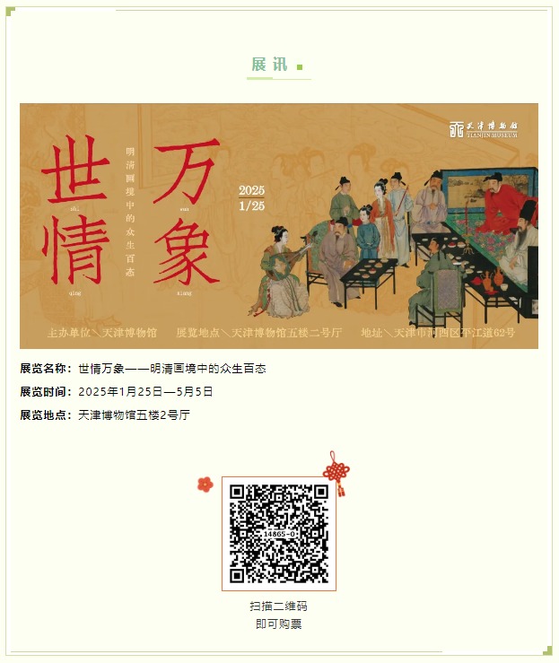 天津博物馆有着丰富的明清绘画馆藏,画科全面,题材广泛,而重庆中国三峡博物馆更有着独具地方特色的名家珍品,“世情万象——明清画境中的众生百态”展览在深度挖掘两馆馆藏的基础上,结合近年来对相关藏品的研究成果,首次创新性地从绘画内容出发,通过讲好文物故事,传递文化魅力。展览共展出76件/套珍贵文物,分为节序同风、百业兴荣、时世变换和适心娱情四个单元,对明清绘画中所反映的这一时期的岁时节俗、劳动生产、生活和休闲娱乐四个方面内容进行解读,通过绘画中对明清时期社会政治、经济、文化诸方面的反映,向观众呈现古人绚烂多姿的物质生活和精神世界。