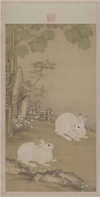 清 冷枚 梧桐双兔图轴(故宫博物院藏)