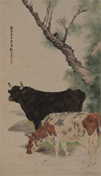 刘奎龄 双牛图