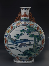 清 乾隆斗彩农耕图扁壶