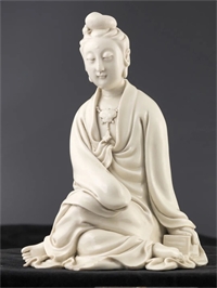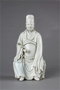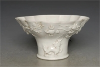 明末清初 德化窑白釉贴塑梅花八角带把杯